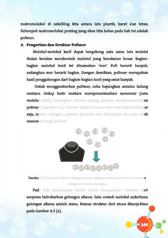 mutiara. Setiap butir mutiara merepresentasikan monomer (satu