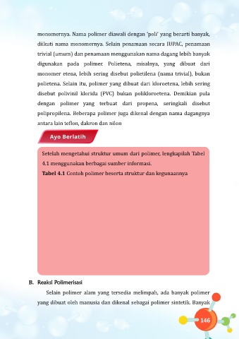 Setelah mengetahui struktur umum dari polimer, lengkapilah Tabel