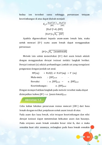 disimpulkan bahwa [H ] = α . [asam lemah]awal
