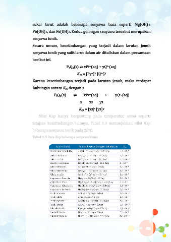 tetapan kesetimbangan lainnya. Tabel 1.3 menunjukkan nilai Ksp