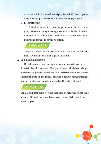 cairan tetapi tidak dapat dilewati partikel koloid. Contoh proses