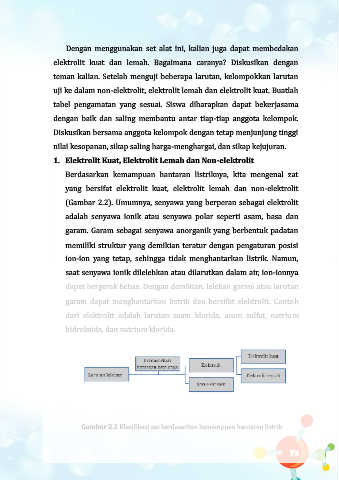 garam  dapat  menghantarkan  listrik  dan  bersifat  elektrolit.  Contoh