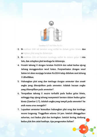 4. Penuhi tabung U dengan larutan Na2SO4 dan sekat kedua ujung