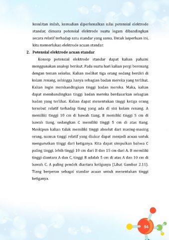 kesulitan inilah, kemudian diperkenalkan nilai potensial elektrode