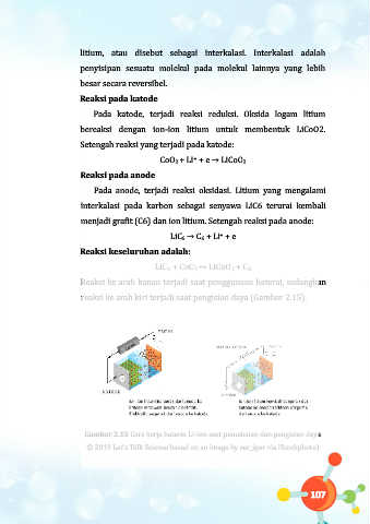 litium, atau disebut sebagai interkalasi. Interkalasi adalah