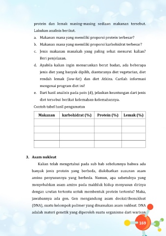 protein dan lemak masing-masing sediaan makanan tersebut.
