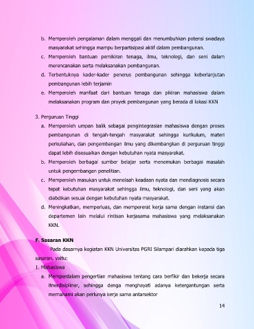 e. Memperoleh manfaat dari bantuan tenaga dan pikiran mahasiswa dalam