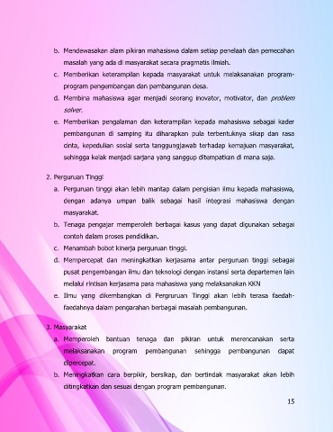 e. Ilmu yang dikembangkan di Pergruruan Tinggi akan lebih terasa faedah-