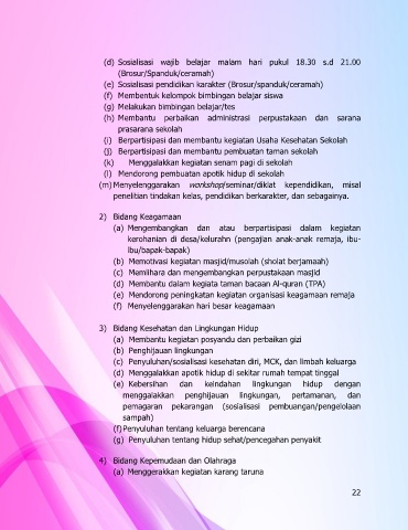 (d) Sosialisasi wajib belajar malam hari pukul 18.30 s.d 21.00