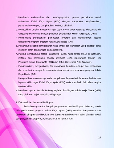 tanggungjawab sesuai dengan pedoman pelaksanaan Kuliah Kerja Nyata (KKN).