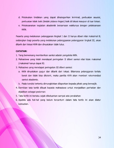 berat dan tidak bisa ditolerir, maka panitia KKN akan memberi rekomendasi