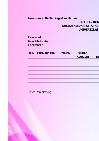 No. Hari/Tanggal Waktu Uraian Tempat Sifat Keterangan
