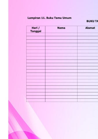 Lampiran 11. Buku Tamu Umum BUKU TAMU UMUM Hari / Nama Alamat Maksud Pelaksanaan Tanda Tanggal Kunjungan Tangan 57