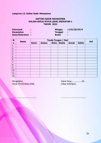 Lampiran 13. Daftar Hadir Mahasiswa