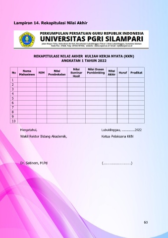 Lampiran 14. Rekapitulasi Nilai Akhir