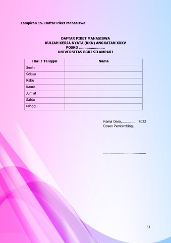 Lampiran 15. Daftar Piket Mahasiswa