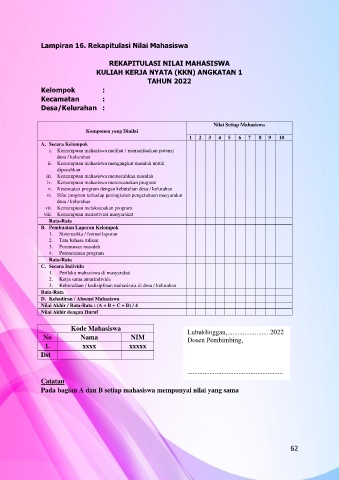 Lampiran 16. Rekapitulasi Nilai Mahasiswa