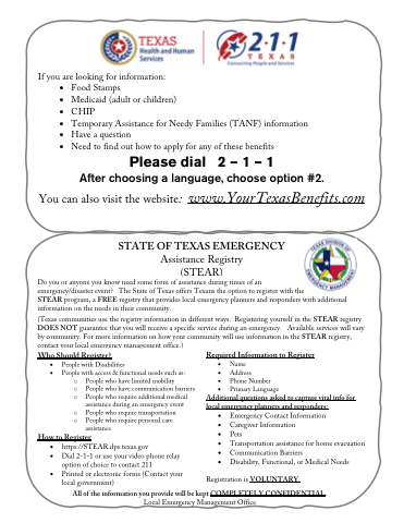 emergency/disaster event? The State of Texas offers Texans the option to register with the