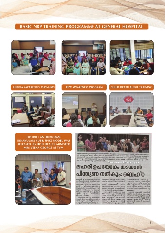 BASIC NRP TRAINING PROGRAMME AT GENERAL HOSPITAL ANEMIA AWARENESS DAY-AIMS HPV AWARENESS PROGRAM CHILD DEATH AUDIT TRAINING DISTRICT ANTIBIOGRAM ERNAKULAM HUB& SPIKE MODEL WAS RELEASED BY HON HEALTH MINISTER MRS VEENA GEORGE AT TVM 11