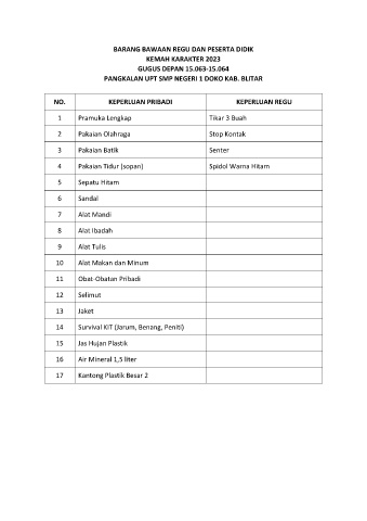 BARANG BAWAAN REGU DAN PESERTA DIDIK