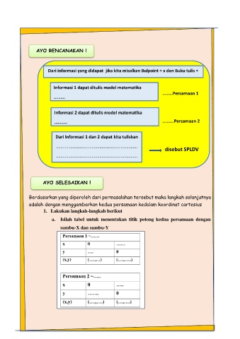 a. Isilah tabel untuk menentukan titik potong kedua persamaan dengan
