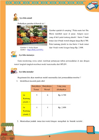 2. Memisalkan jumlah tomat dan wortel dengan mengubah ke bentuk variabel .