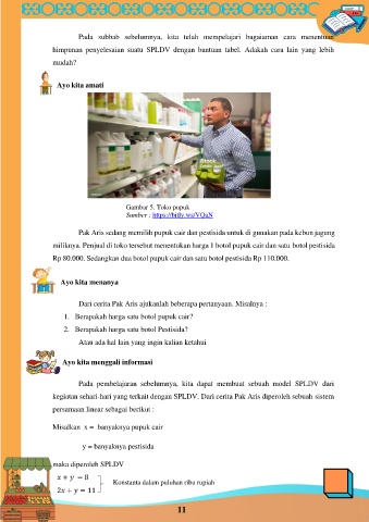 kegiatan sehari-hari yang terkait dengan SPLDV. Dari cerita Pak Aris diperoleh sebuah sistem