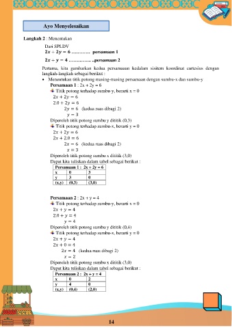 • Menentukan titik potong masing-masing persamaan dengan sumbu-x dan sumbu-y