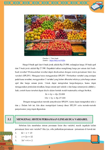 5.1 MENGENAL SISTEM PERSAMAAN LINEAR DUA VARIABEL