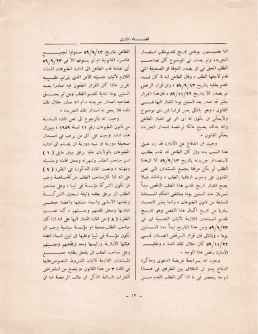 ﻣﻦ ﻗﺎﻧﻮﻥ ﺍﻟﻤﻄﺒﻮﻋﺎﺕ ﺭﻗﻢ ١ﺍ ﻟﺴﻨﺔ ، ١٩٥٩ﻳﺒﺒﻴﻨﺎﻥ ﻭﺍﻧﻪ ﺑﺬﻟﻚ ﻳﺼﺒﺢ ﻣﺎﻟﻜﺎ ﻟﺮﺧﺼﺔ ﺍﺻﺪﺍﺭ ﺍﻟﺠﺮﻳﺪﺓ