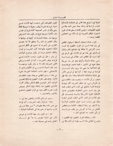 ﻭﻫﻰ (ﺃ) ﺍﻥ ﺗﺸﺮ ﺍﻟﺼﺤﻴﻔﺔ ﻛﺘﺎﺑﺔ (ﺏ) ﺍﻥ ﺗﺘﺒﺮ ﻗﺎﻧﻮﻥ ﺍﻟﻤﻄﺒﻮﻋﺎﺕ ،ﻭﻟﻴﺲ ﻟﻻﺩﺍﺭﺓ ﺑﻤﻔﺮﺩﻫﺎ ﺍﻥ ﺗﻘﺮﺭ