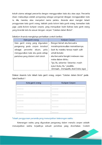 ia, dia, mereka, atau menyebut nama pelaku. Ananda akan mengisi telaah