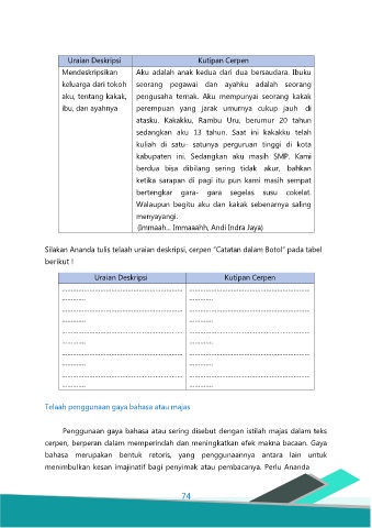 Silakan Ananda tulis telaah uraian deskripsi, cerpen ―Catatan dalam Botol‖ pada tabel