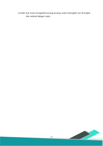 Contoh: Susi mulai mengambil ancang-ancang, mulai melangkah, lari di tempat dan melesat dengan cepat. 77