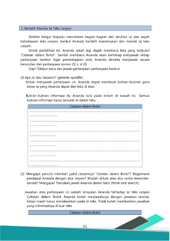 2. Berlatih Menilai Isi Teks Cerpen