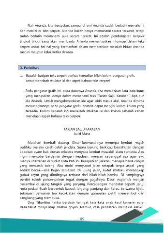 1. Bacalah kutipan teks cerpen berikut kemudian isilah kolom pengatur grafis
