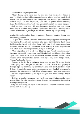 hutan ini. Mbah Uti akan kehilangan pekerjaannya sebagai pemintal kapuk. Entah