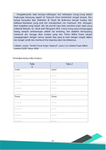 Perbedaan kedua teks tersebut.