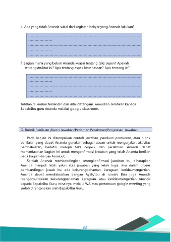 e. Apa yang tidak Ananda sukai dari kegiatan belajar yang Ananda lakukan?