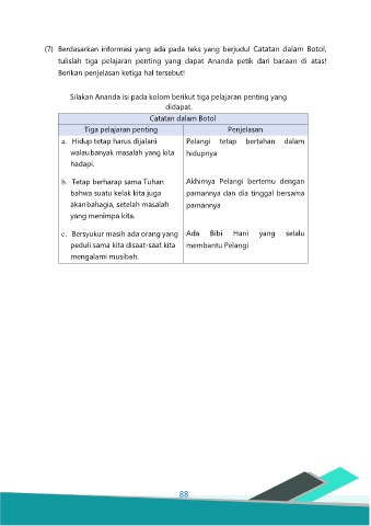 tulislah tiga pelajaran penting yang dapat Ananda petik dari bacaan di atas!