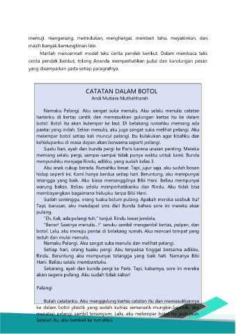 Marilah mencermati model teks cerita pendek berikut. Dalam membaca teks