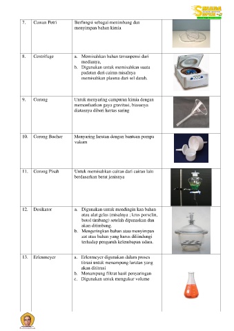 11. Corong Pisah Untuk memisahkan cairan dari cairan lain