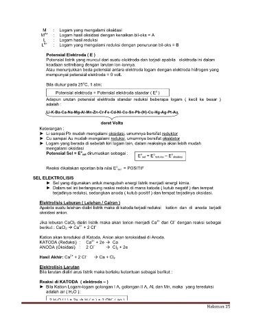 Adapun urutan potensial elektroda standar reduksi beberapa logam ( kecil ke besar )