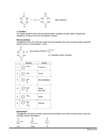 Penggantian satu atom hidrogen pada benzena dengan atom atau senyawa gugus yang lain.