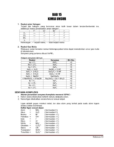 Keterangan : 9 terjadi reaksi, — tidak terjadi reaksi