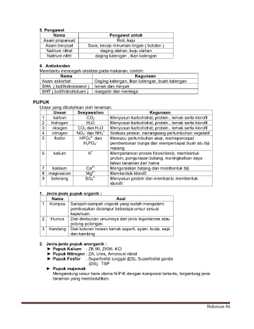 2 hidrogen H 2O Menyusun karbohidrat, protein , lemak serta klorofil