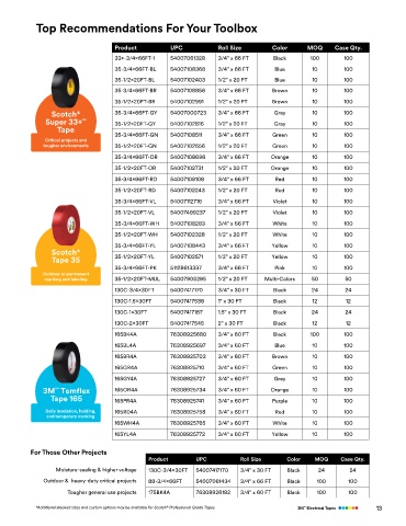 *Additional stocked sizes and custom options may be available for Scotch® Professional Grade Tapes. 3M ™ Electrical Tapes 13