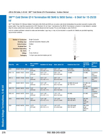JCN & CN Cable, 5-35 kV: 3M™ Cold Shrink QT-II Terminations: Outdoor Skirted