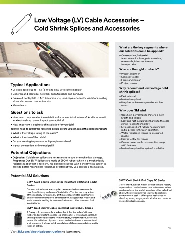 • LV cable splice up to 1 kV (5 kV and 8 kV with some models)           Why recommend low voltage cold