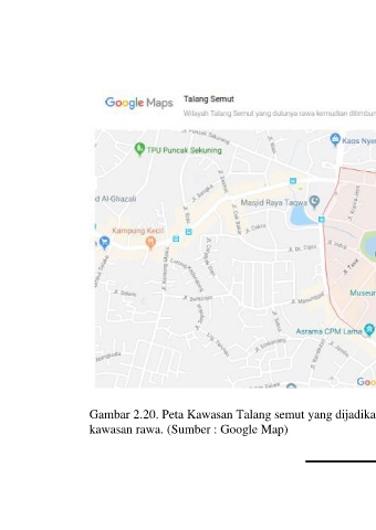 Gambar 2.20. Peta Kawasan Talang semut yang dijadikan perumahan bagi warga Belanda dahulunya merupakan kawasan rawa. (Sumber : Google Map) SUNGAI MUSI; Jejak Perjalanan dan Pembangunan Berkelanjutan 31